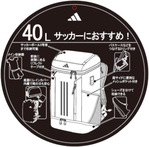⑩ アディダス ボール用デイパック(40L)ボール収納一体型の大容量機能派
